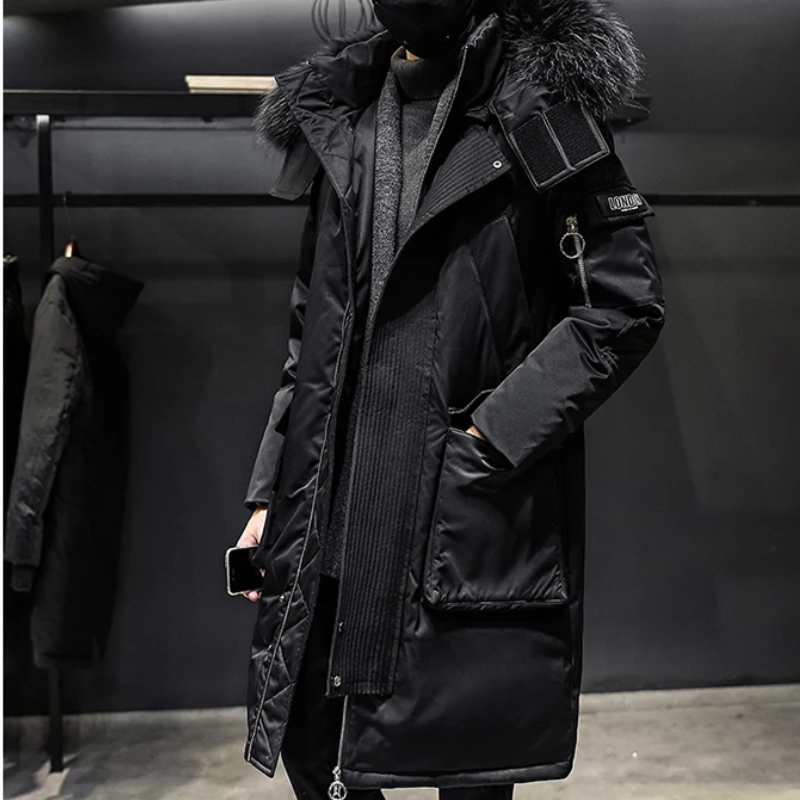 Bastien | Manteau d’Hiver Long pour Homme avec Capuche en Fausse Fourrure et Poches Multiples